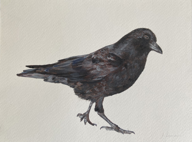 Jessica Levman Crow Ink, watercolour and gouache on paper, 7 x 9 (framed 14.5 x 16.75) |