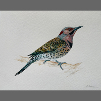 Jessica Levman Northern Flicker Ink, watercolour and gouache on paper, 6 x 9 |