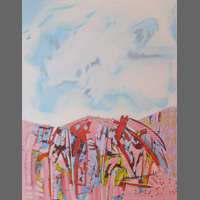 Untitled Plastic Landscape #11 (2025) Mixed media on Mylar, 28 x 22 |