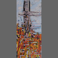 Shane Dwyer is a contemporary painter in St. John's whose work responds to social, cultural, and industrial presences in the landscape. While studying at the Nova Scotia College of Art and Design in the late 90s, he began developing his signature style, which uses layered acrylics and mixed media on surfaces such as paper, canvas, and Mylar. A four-time Arts and Letters Award winner, Shane's exhibition history spans 30 years, with more recent group exhibitions at the Newfoundland and Labrador Craft Council and The Rooms. His current work explores the impact of plastic pollution on Newfoundland's oceans and shorelines.