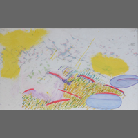 Untitled Plastic Landscape #9 (2025) Mixed media on Mylar, 42 x 26 |