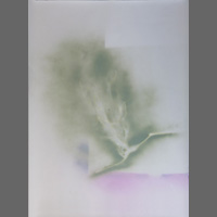 Untitled Plastic Landscape #10 (2025) Mixed media on Mylar, 23 x 14 |