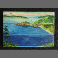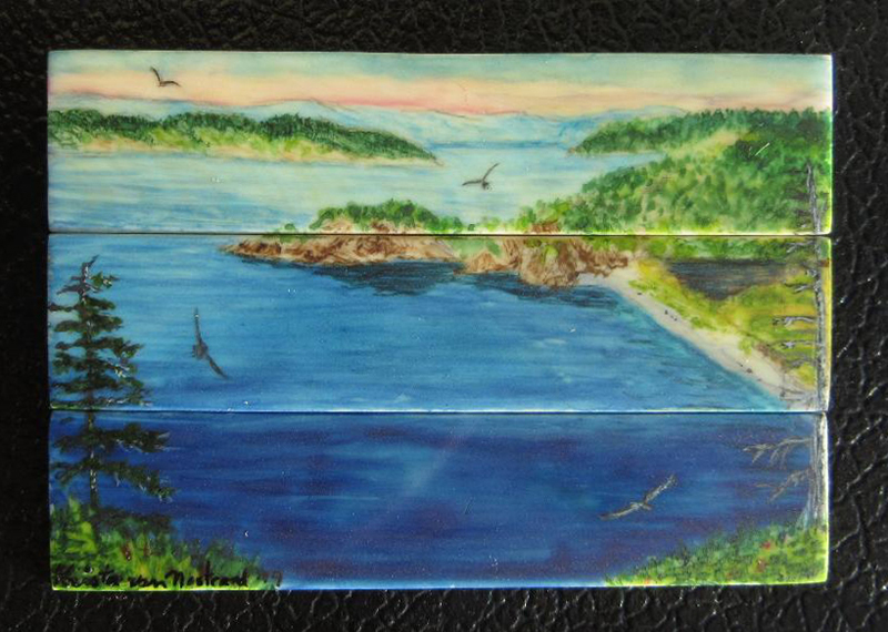 Krista van Nostrand View of Port Rexton From the Skerwink Trail Watercolour on Antique Ivory Piano Keys, 2 1/2 x 3 1/8 |