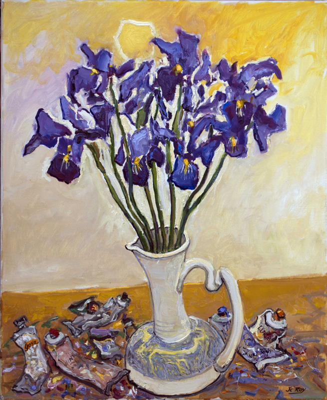 Jean Claude Roy Irises in Bernard's Pottery Oil on canvas, 23.6 x 28.7 |