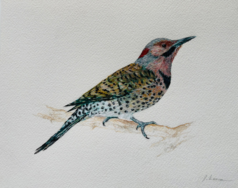 Jessica Levman Northern Flicker Ink, watercolour and gouache on paper, 6 x 9 |