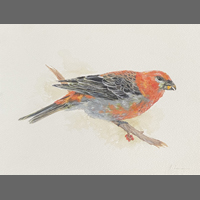 Jessica Levman Pine Grosbeak Ink, watercolour and gouache on paper, 7 x 9 (framed 14.5 x 16.75) |