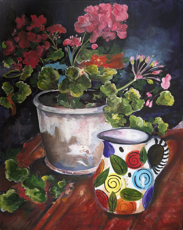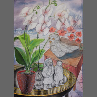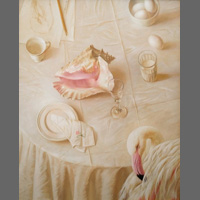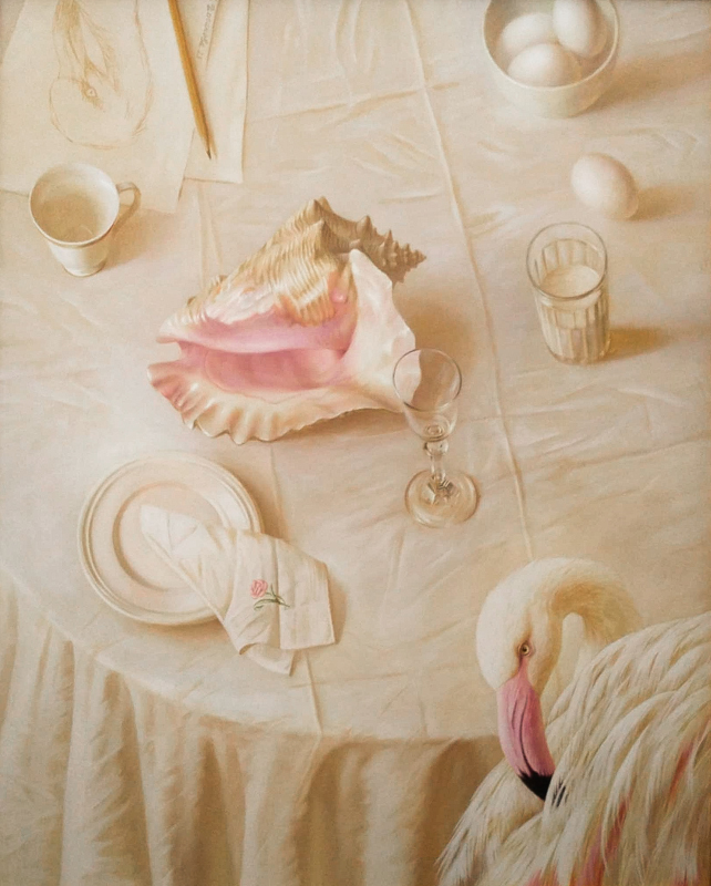 Evguenia Ioganova Breakfast with Flamingo oil on board, 24 x 30 |