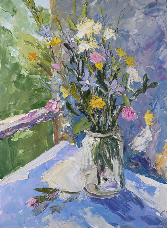 Steven Rhude Garden Bouquet oil on canvas, 24 diameter |