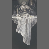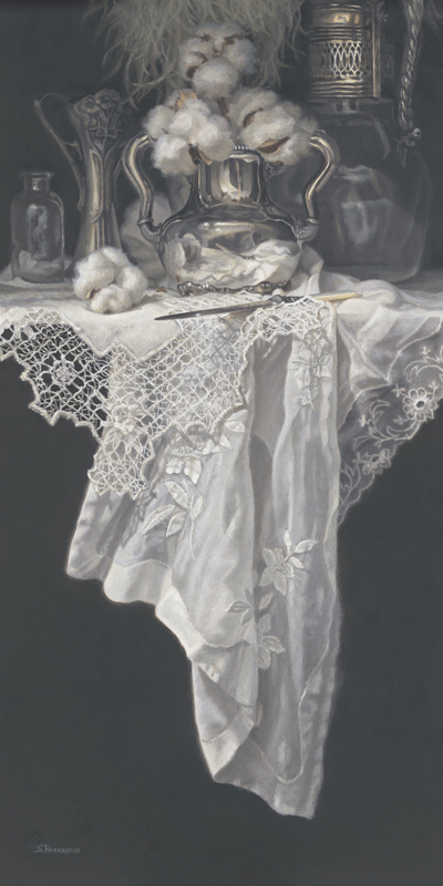 Susan Paterson Cotton Bols and Lace oil on panel 24 x 12, 29 x 17 framed |