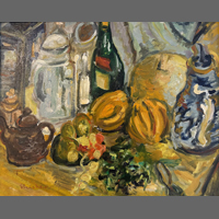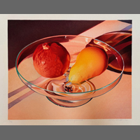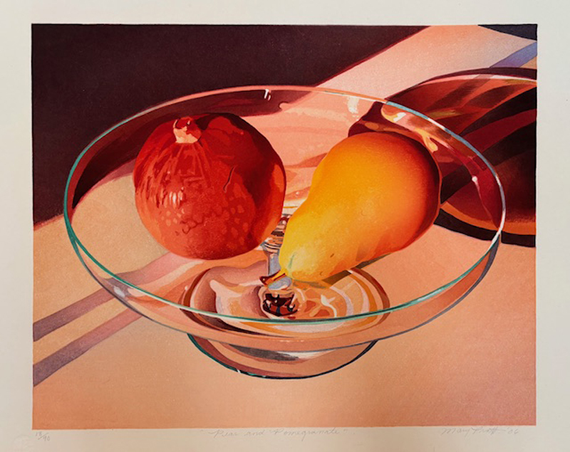 Mary Pratt RCA Pear and Pomegranate (2006) woodcut, 12 x 16 |