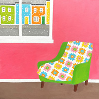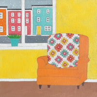 Lori Doody Cozy Chair II acrylic on wood panel, 8 x 8 |