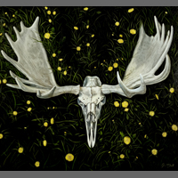 Jackie Evans Rupert's Treasures acrylic, gold leaf and oil pastel on canvas 20 x 16 |