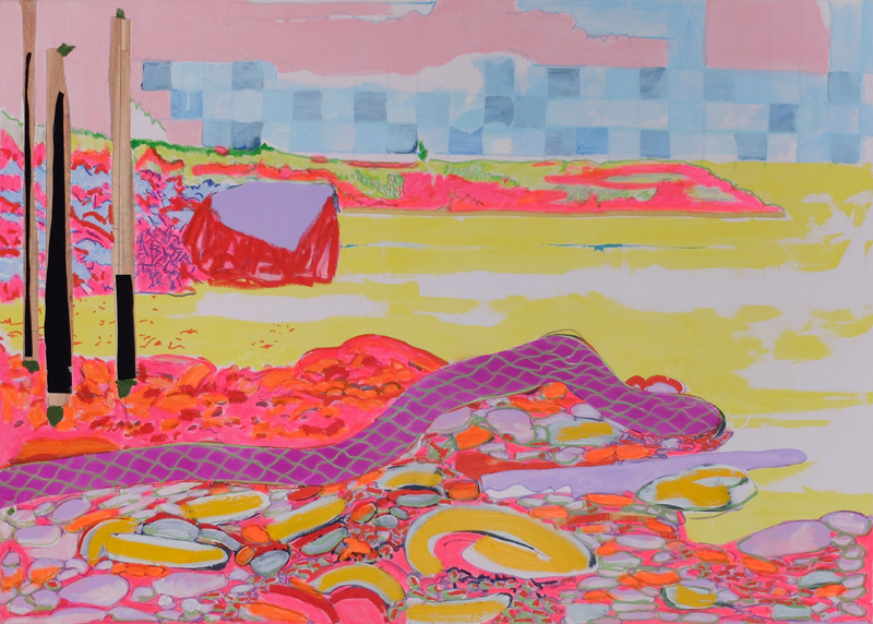 Untitled Plastic Landscape #11 (2025) Mixed media on Mylar, 28 x 22 |