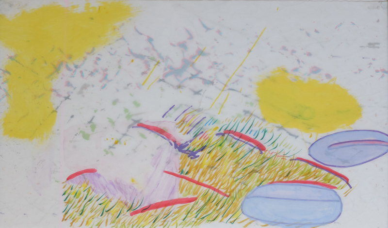 Untitled Plastic Landscape #9 (2025) Mixed media on Mylar, 42 x 26 |