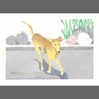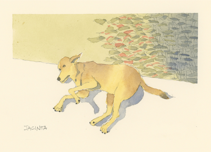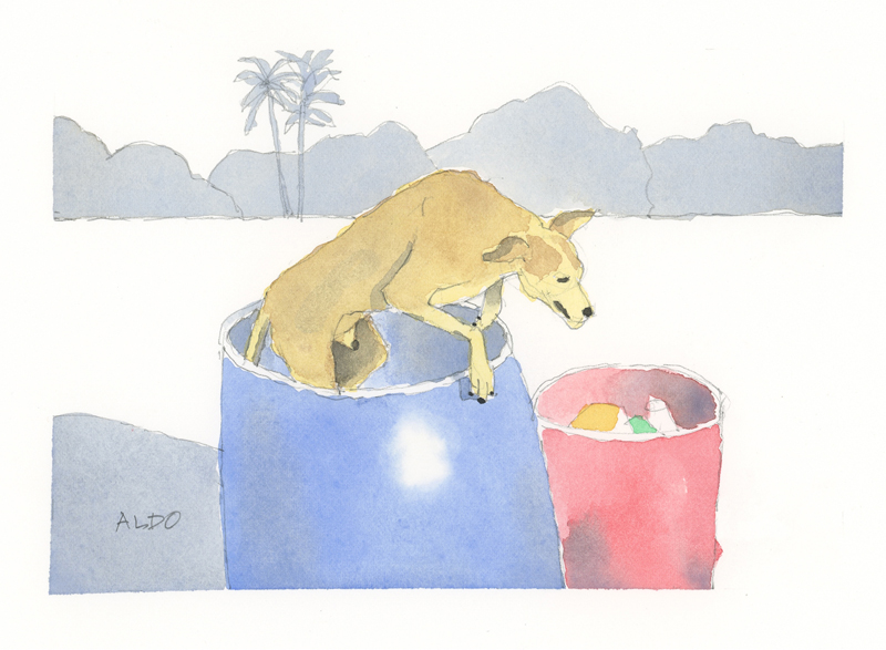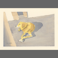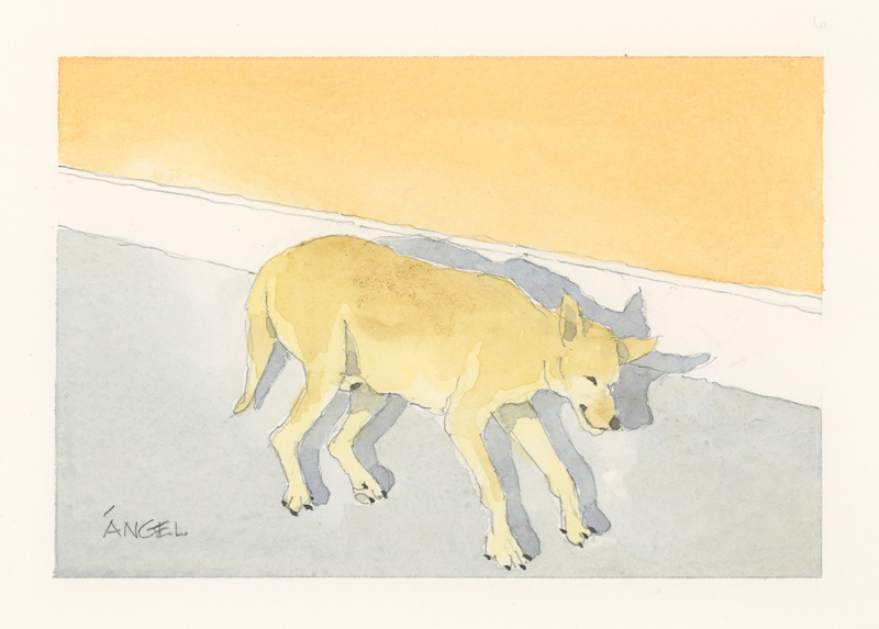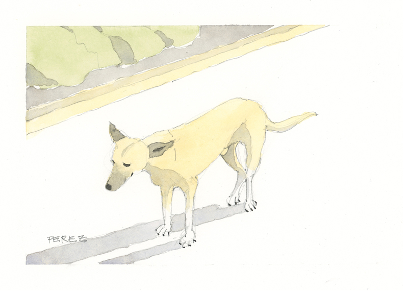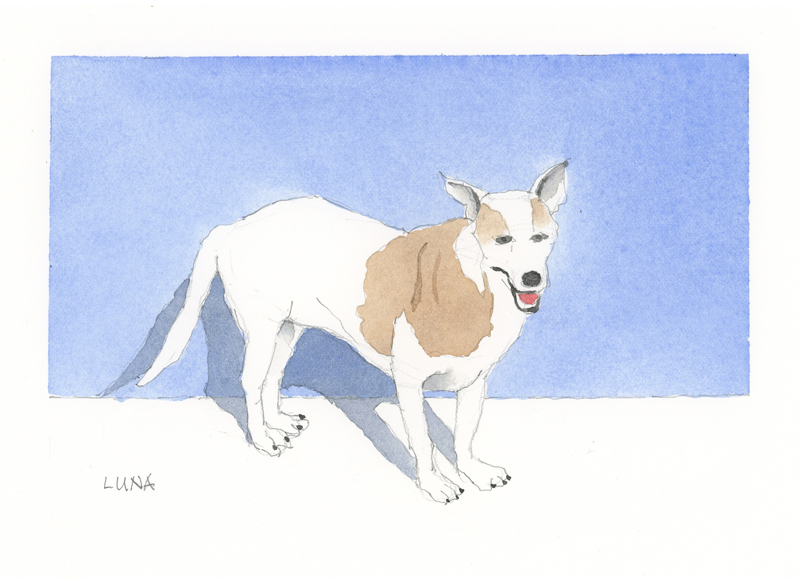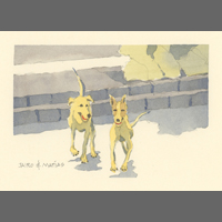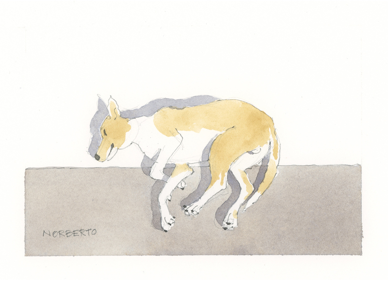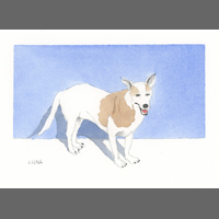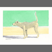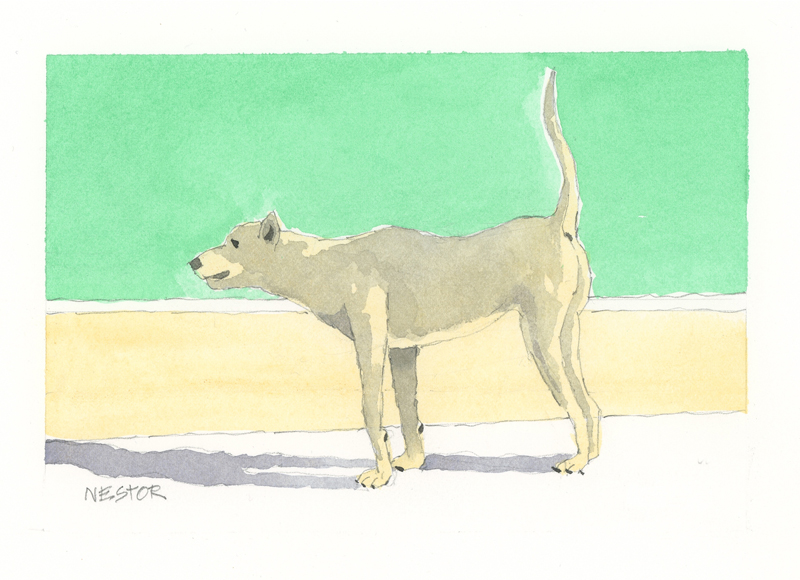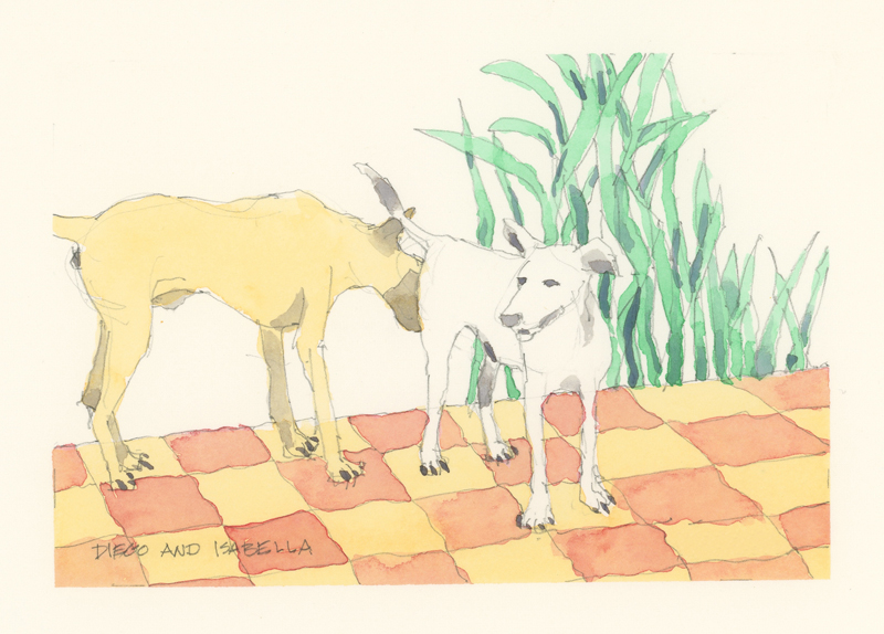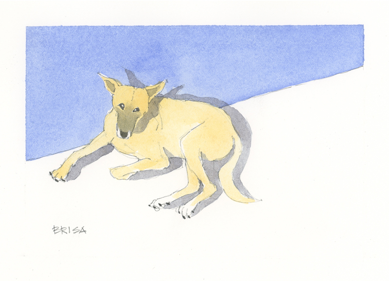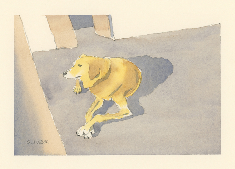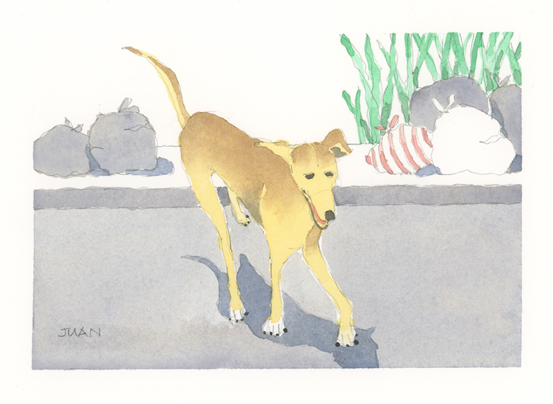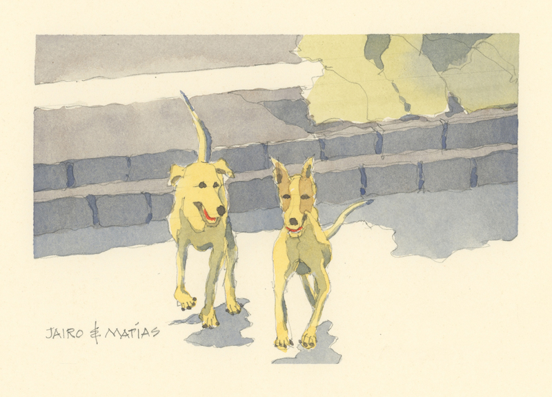 Twelve years ago, we found Oliver, a street dog on the Calzada in the historic city of Granada, Nicaragua. He was in very poor health, but he recovered, and he has lived with us in our house in Granada ever since. Over time you get to know the street dogs. Like street dogs all over the world, they mostly look alike, and they must be smart to survive. At one time they were not treated very well. The situation has improved in recent years, and people have been giving them food and water. Shelters run by volunteers have been trying to improve things by running health, neutering, and adoption programs. In 2024 I started making small watercolour paintings of Granada's street dogs. Except for Oliver, I made up their names, but it is possible some street dogs in Granada do have names!