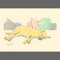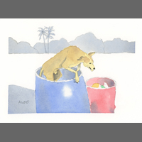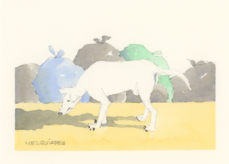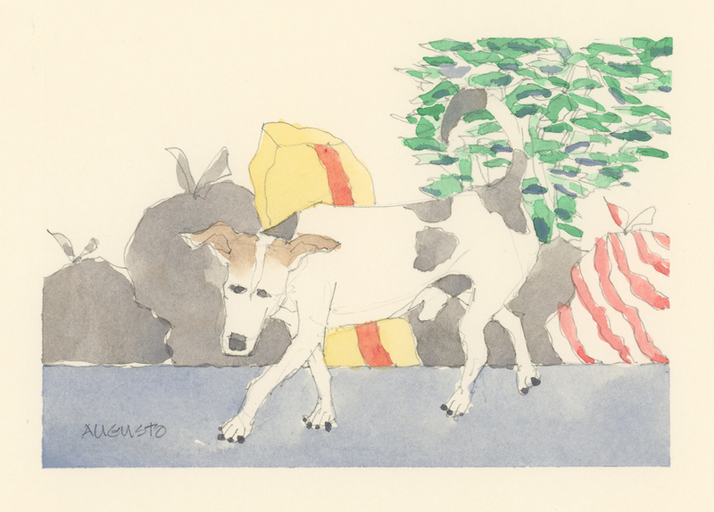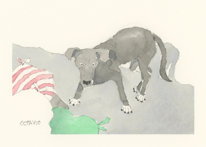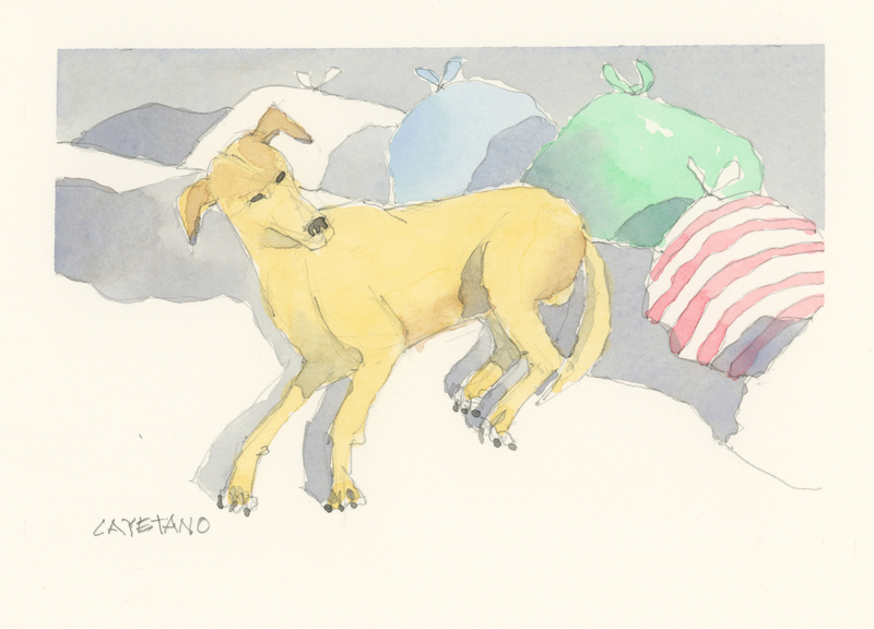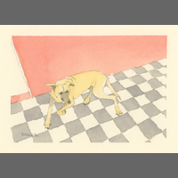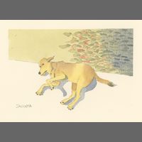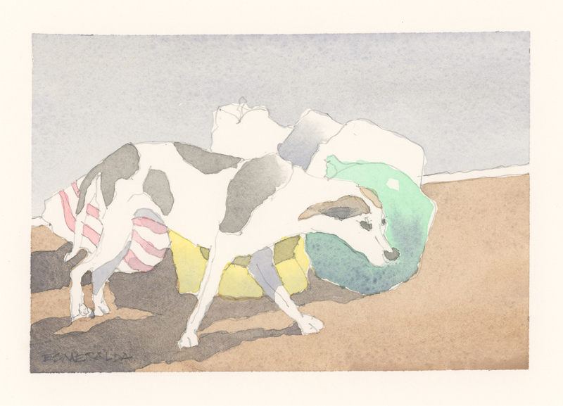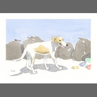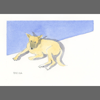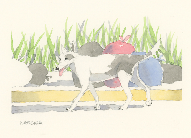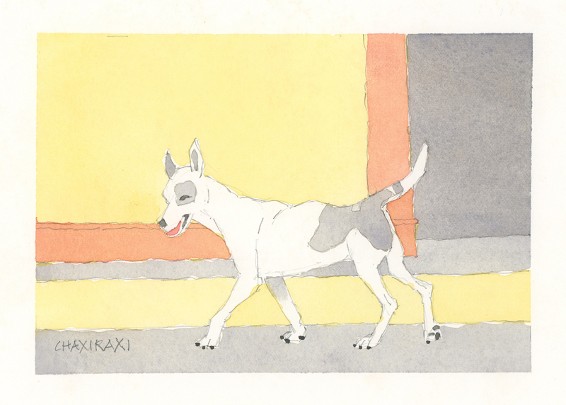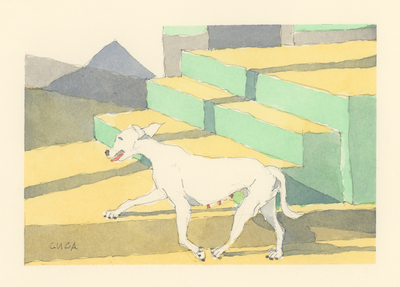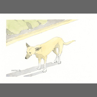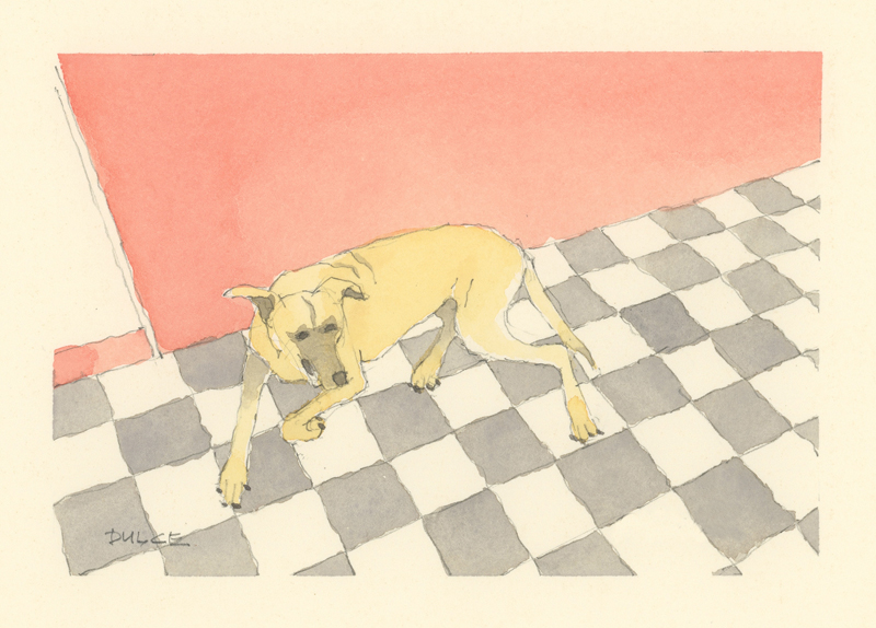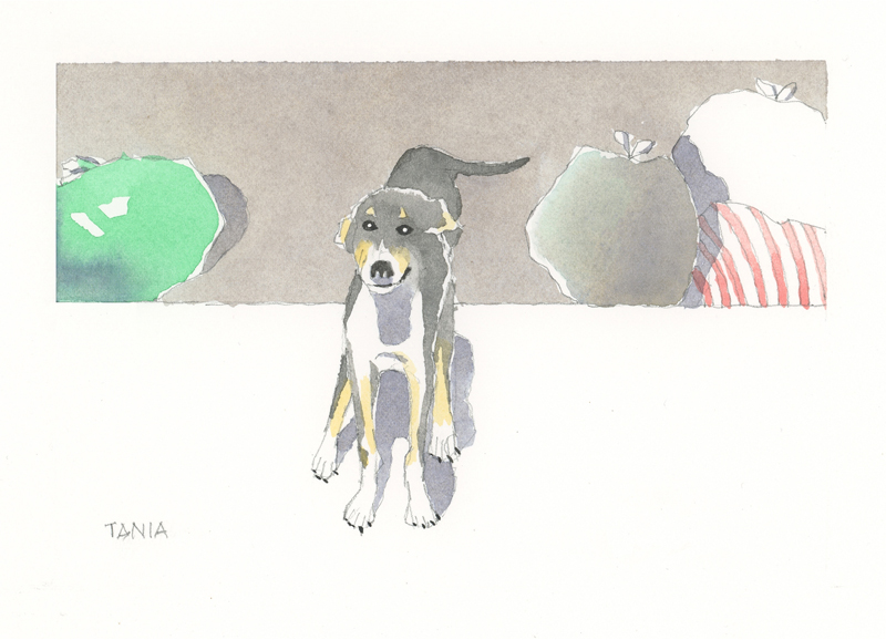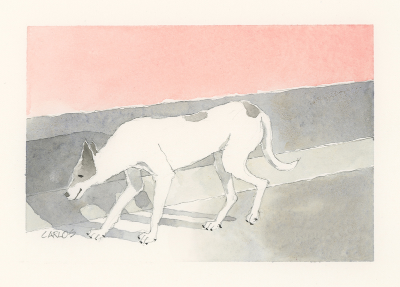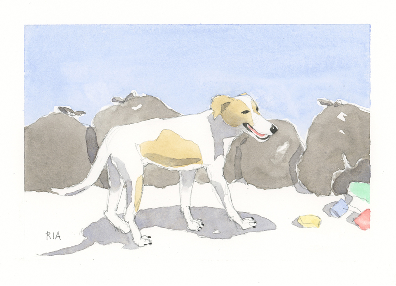 Twelve years ago, we found Oliver, a street dog on the Calzada in the historic city of Granada, Nicaragua. He was in very poor health, but he recovered, and he has lived with us in our house in Granada ever since. Over time you get to know the street dogs. Like street dogs all over the world, they mostly look alike, and they must be smart to survive. At one time they were not treated very well. The situation has improved in recent years, and people have been giving them food and water. Shelters run by volunteers have been trying to improve things by running health, neutering, and adoption programs. In 2024 I started making small watercolour paintings of Granada's street dogs. Except for Oliver, I made up their names, but it is possible some street dogs in Granada do have names!