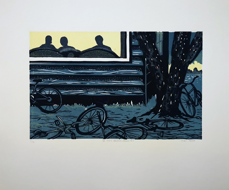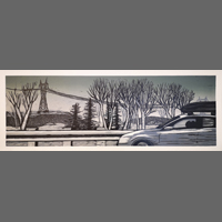 Alexander Pratt is a multidisciplinary artist from St. John's, Newfoundland. He received his bachelor of arts from Nova Scotia College of Art and Design in 2024 after transferring from Northwestern Polytechnic in Grande Prairie, Alberta, in 2021; he also holds a BSc with focus on earth science from Memorial University in Newfoundland. Alex uses his keen observational skills from his time studying geology and combines them with various painting, printmaking, and drawing techniques to explore the places and spaces around him. Paying particular attention to the mood and atmosphere Alex enjoys showcasing the juxtaposition between nature and the built environment. During his time at NSCAD Alex's work has been included in a number of group shows as well as his solo graduation exhibit, "Tanks A Lot!" His solo show included a selection of prints, paintings, and drawings which depicted industrial and residential oil tanks. To Alex, these tanks represent modern comforts but are also a reminder of the impact the industry has had on our planet. This duality was shown in the artwork, manifesting itself as an uneasy atmosphere superimposed on an otherwise benign object or scene. In his final semester in Grande Prairie, Alex's work and dedication were recognized when he received the Carmen & Gail Haakstad and Family Award.