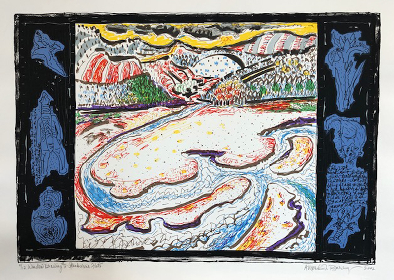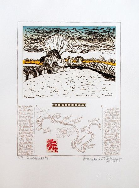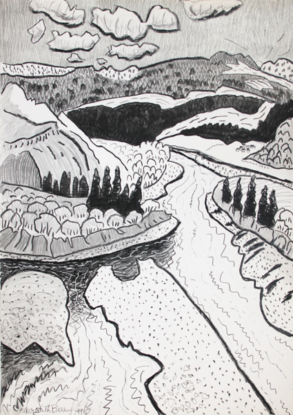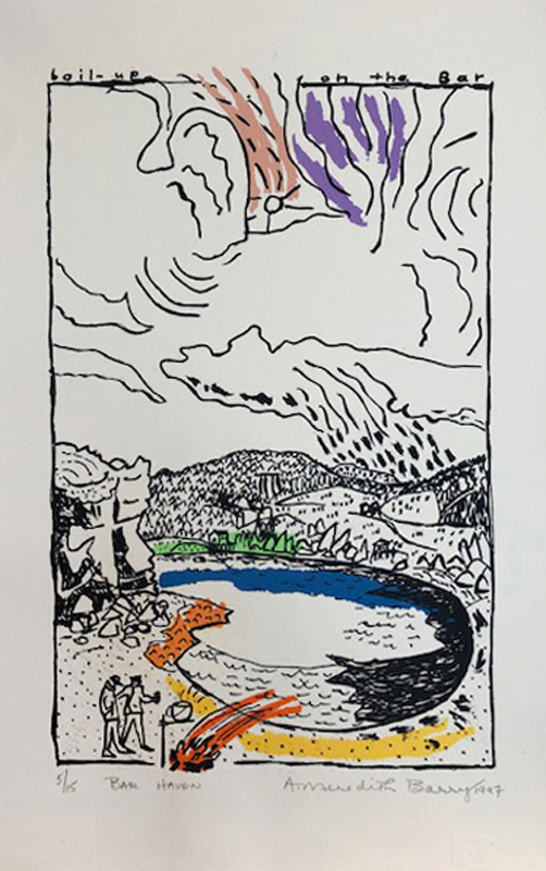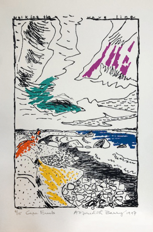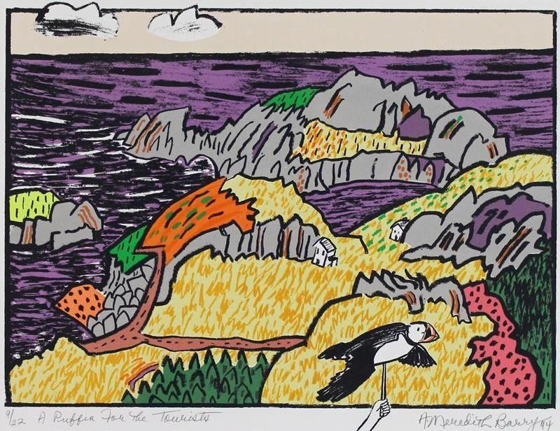During her lifetime, Anne Meredith Barry's bold, strongly coloured works were widely exhibited in solo and group shows across Canada and internationally. Of particular note was the exhibition "Down North"—prints, mixed-media works, and paintings on paper—that resulted from her 1993 trip along the Labrador Coast; it was curated by the Art Gallery of Newfoundland in 1998 and circulated nationally by the University of Toronto's Blackwood Gallery. The following year her work was included in "True North: The Landscape Tradition in Contemporary Canadian Art," which travelled to the Kaohsiung Museum in Taipei, Taiwan.