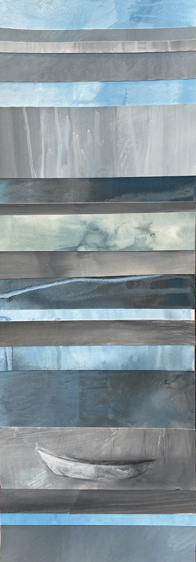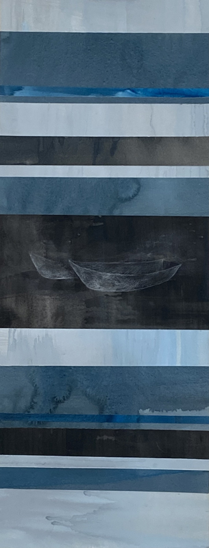 Some of these works also contain fishing boats which are such an integral part of the culture and landscape of Newfoundland. Fishing boats are not only beautiful and romantic symbols of sustenance and survival but also, as most families have a connection to someone who perished while fishing or at sea, a constant reminder of mortality. For me personally, boats also remind me of the human body: they are fragile and yet strong, designed to triumph over harsh conditions.