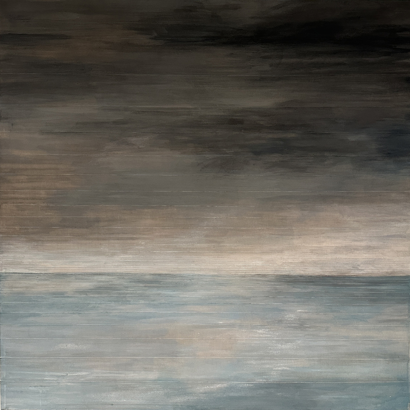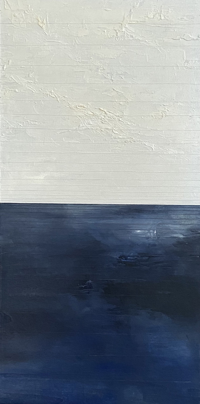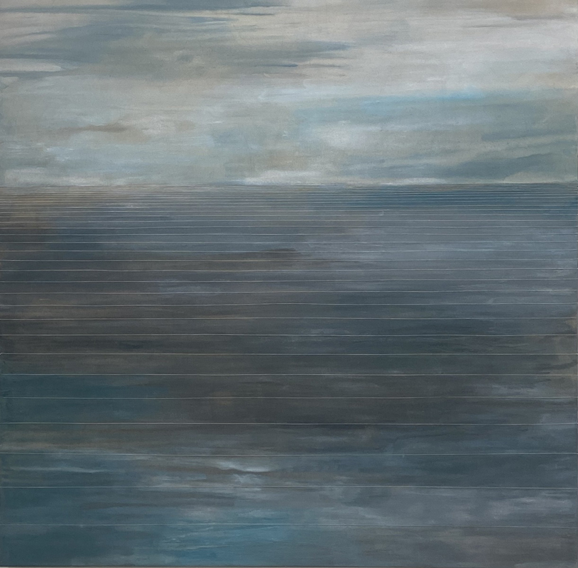 Flatrock Tapestries were inspired by the area and community around my home in Flatrock, Newfoundland with its powerful and vast surroundings where the horizon line is dominant. The seemingly endless division between ocean and sky is now part of my consciousness and, as a result, a motif in these artworks.