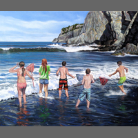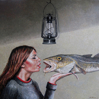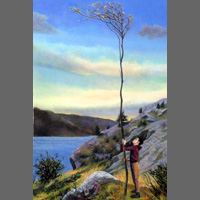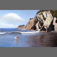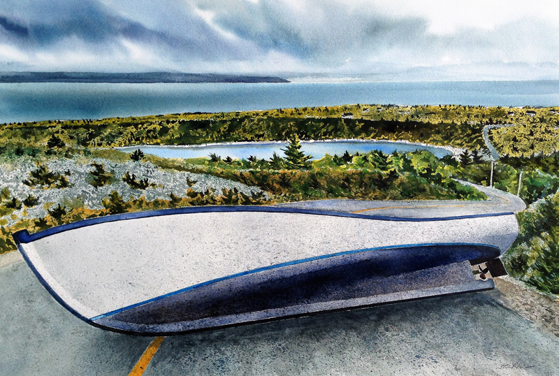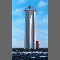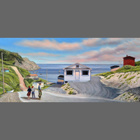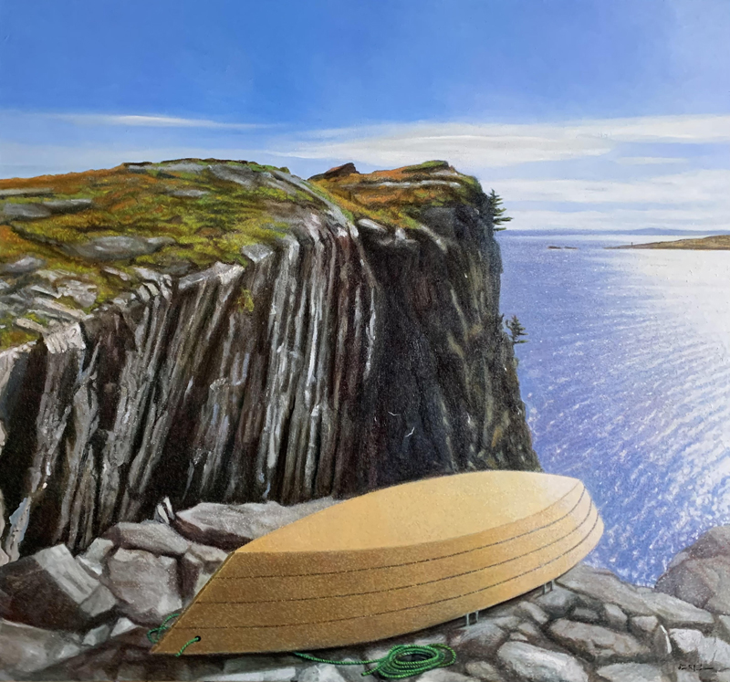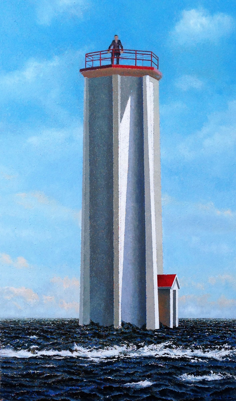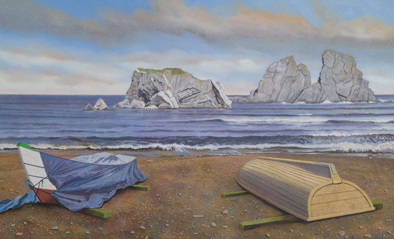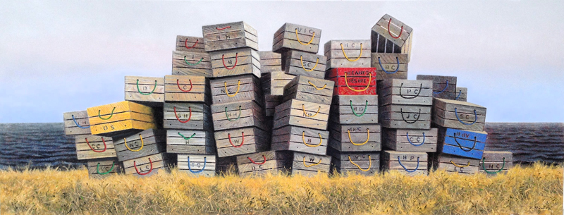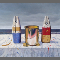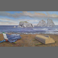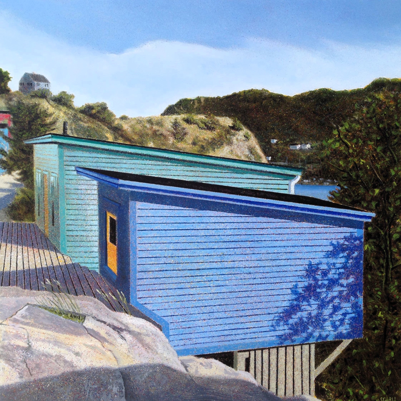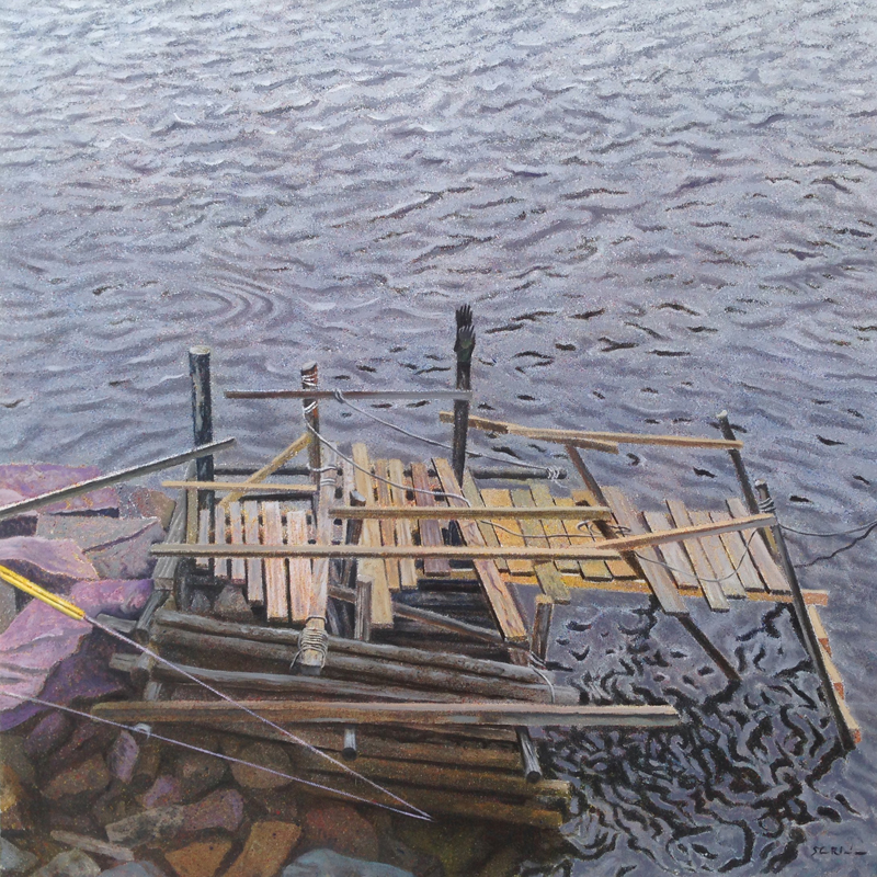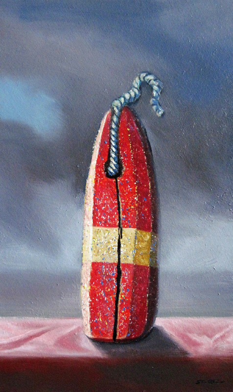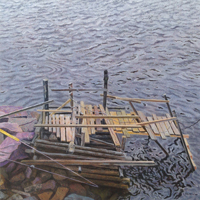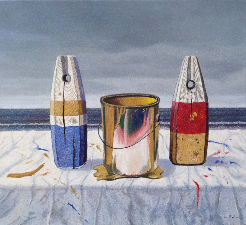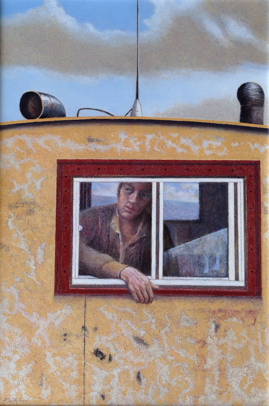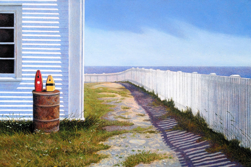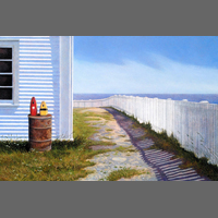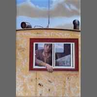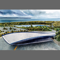 Steven Rhude has steadily pursued his vision of vernacular imagery with an imposing strategy. Set in unconventional situations, he employs familiar coastal icons like sheds and boats that help Steven elbow his way into the viewers mental space. Although based on real places, Rhude considers the settings in his paintings as ficticious - intended to evoke a cultural or social perspective. Aided by his use of realism and the modernist canon, Rhude's imagery can leave one wondering what the protagonist's strengths really are and whether the objects and subjects viewed have more than just utilitarian characteristics.