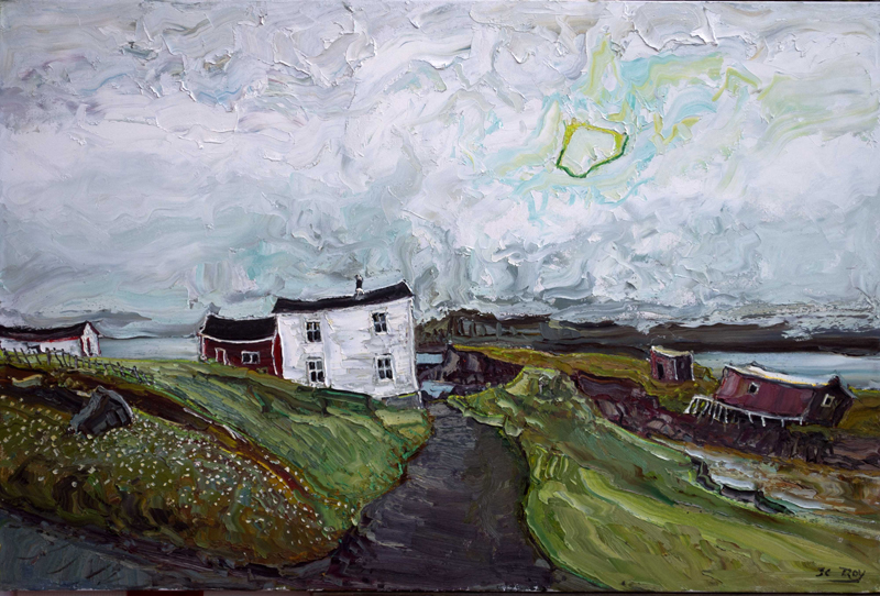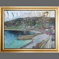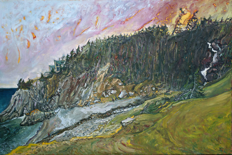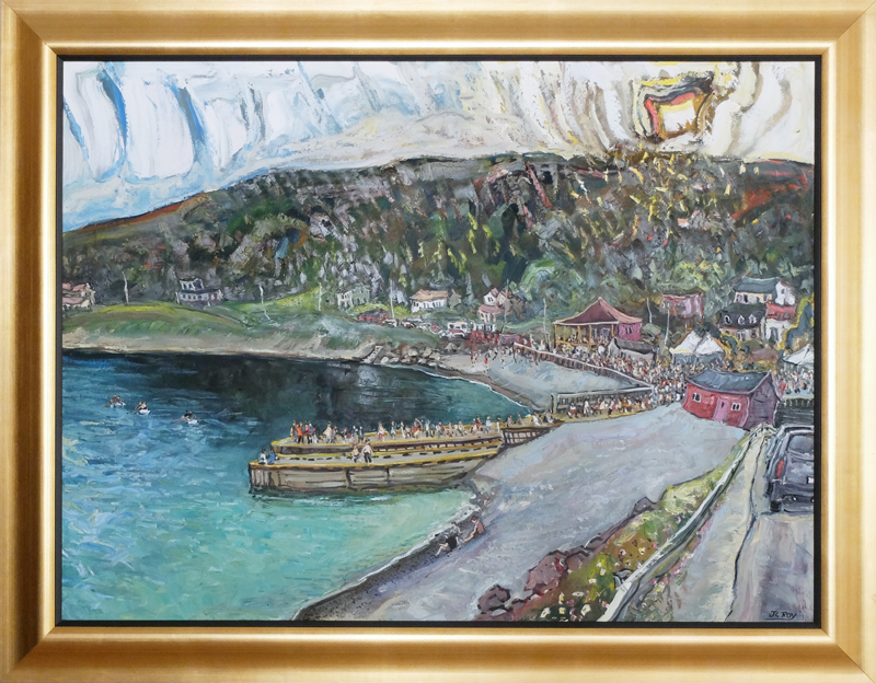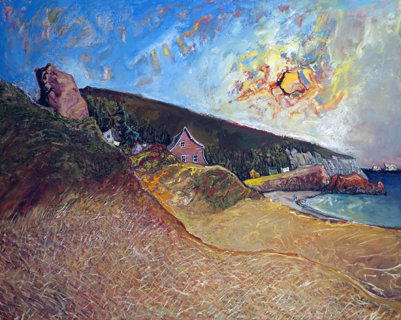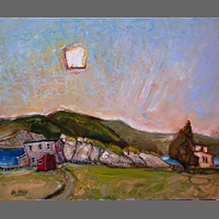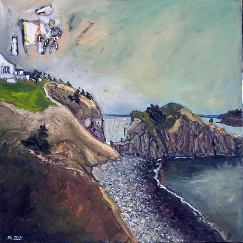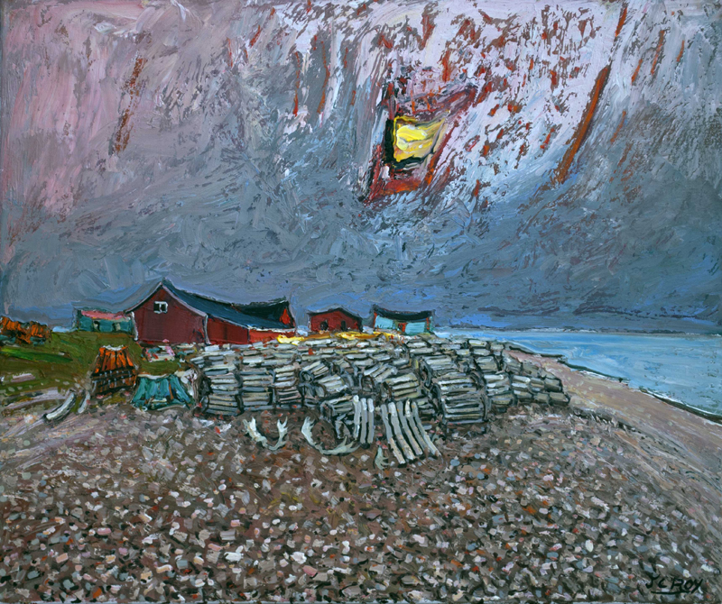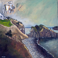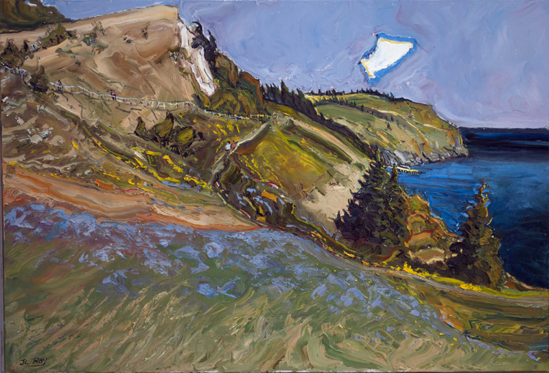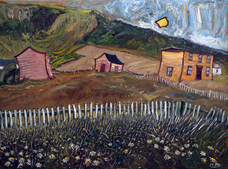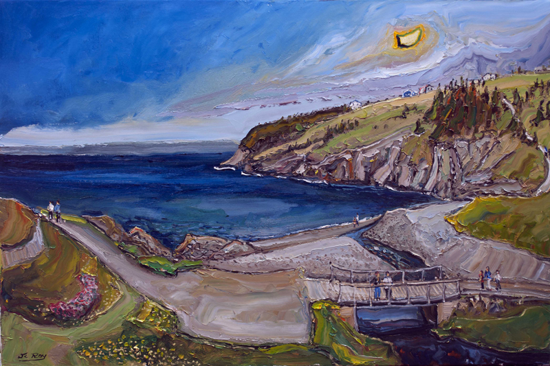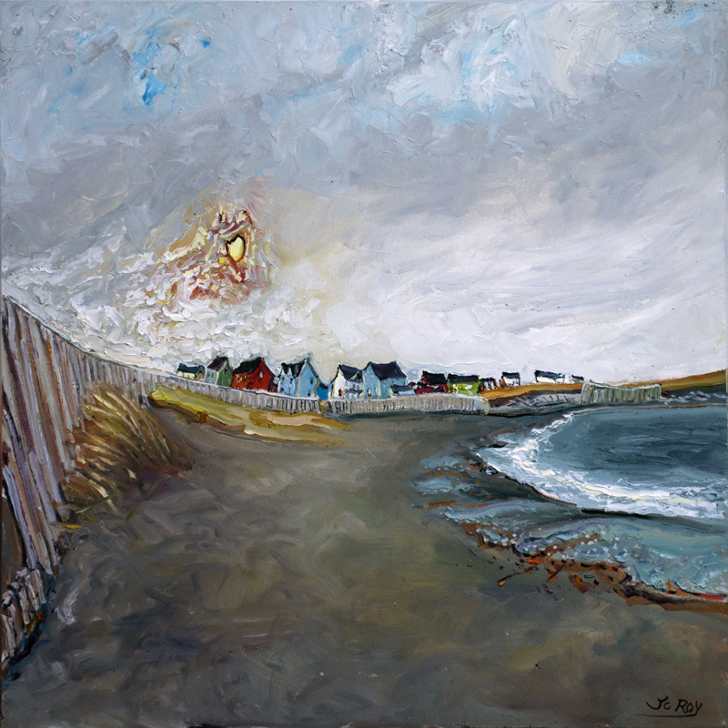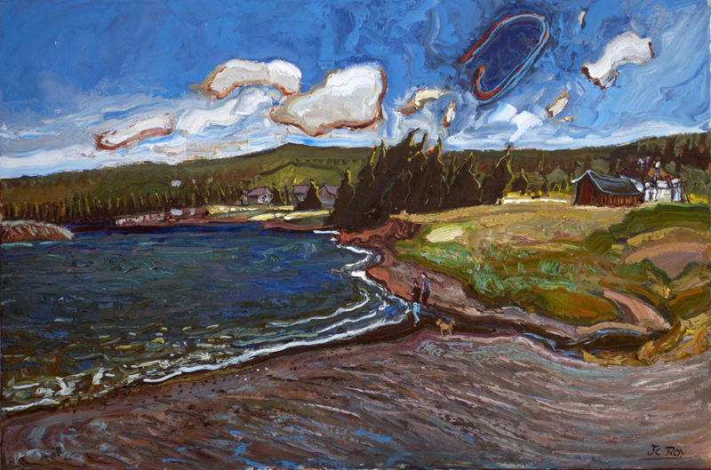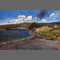 Jean Claude is one of the rare artists who paints almost exclusively on site, and because he paints every day, he sometimes finds himself faced with rain, wind, or snow. For him, a painting is a page in his diary, and each painting reflects not only the atmosphere of the place, but also the people he meets along the way. Between 2004 and 2010, Jean Claude and his wife, Christina Benedict, developed and designed the "French Shore Tapestry," a 220-foot-long work of art and craft embroidered by women from the community of Conche in northern Newfoundland.