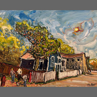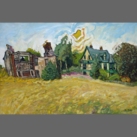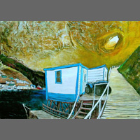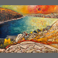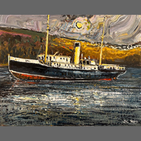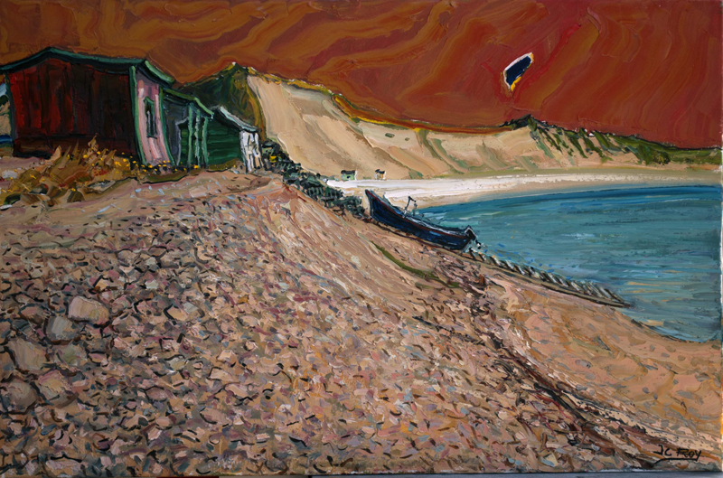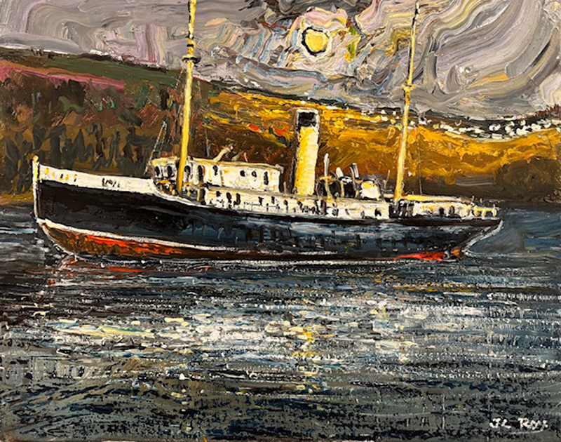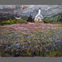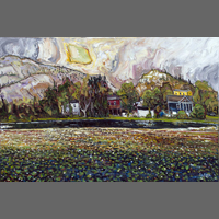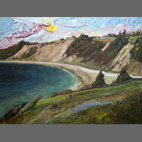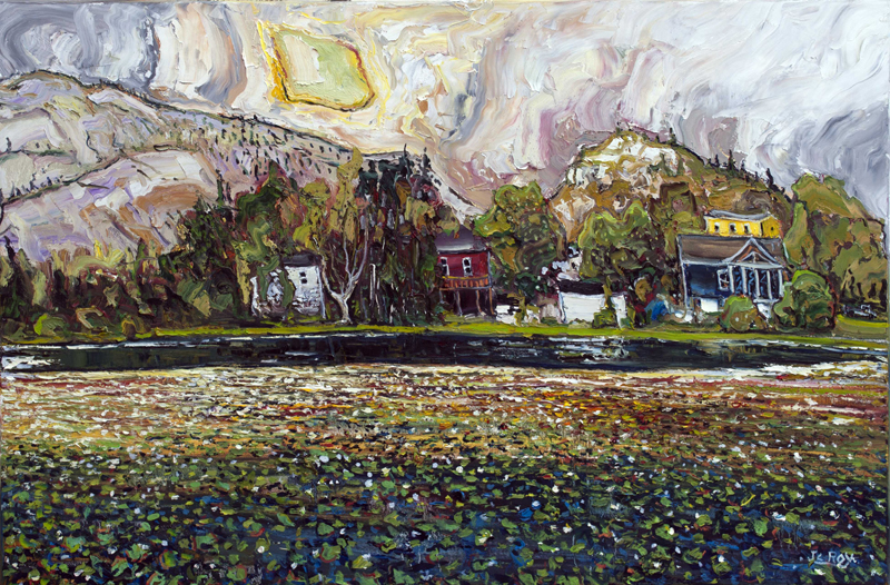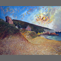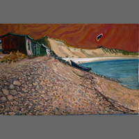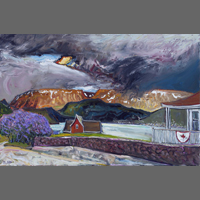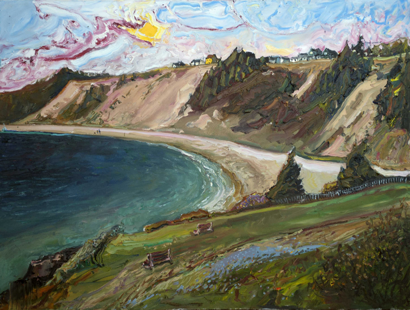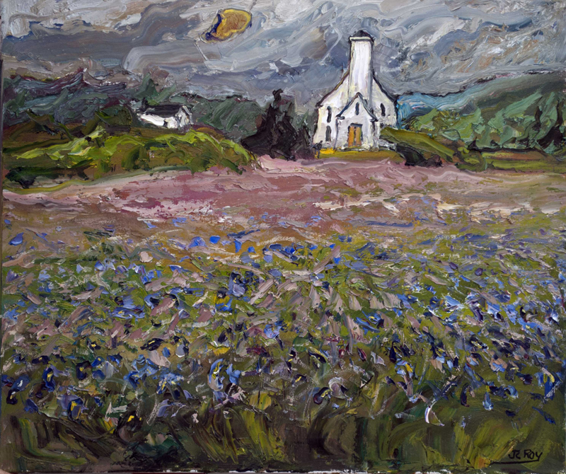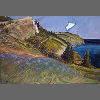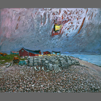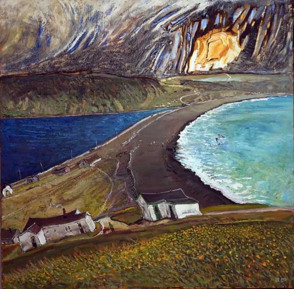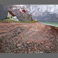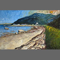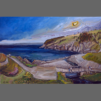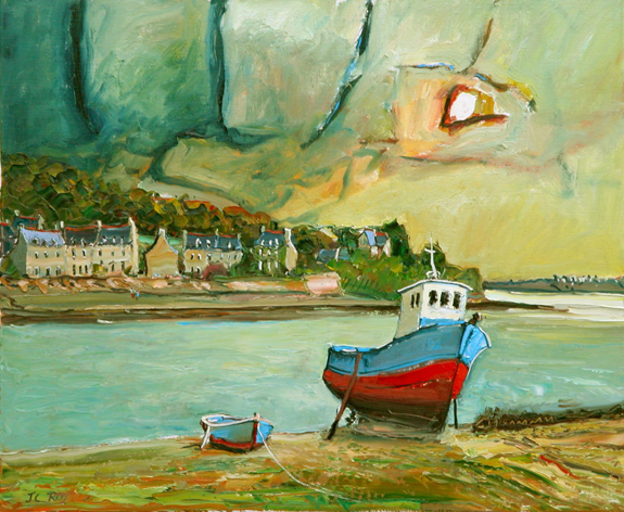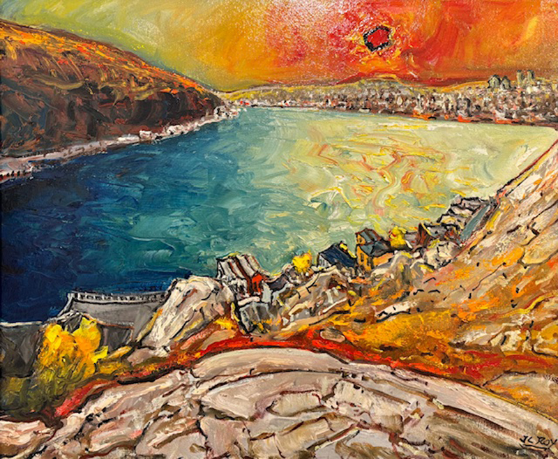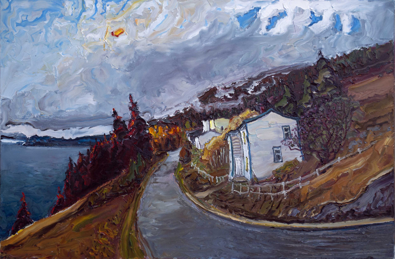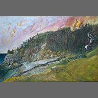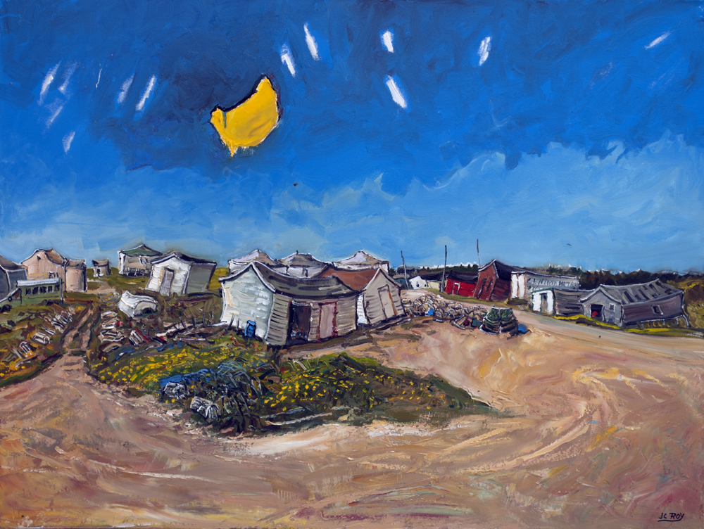 Jean Claude is one of the rare artists who paints almost exclusively on site, and because he paints every day, he sometimes finds himself faced with rain, wind, or snow. For him, a painting is a page in his diary, and each painting reflects not only the atmosphere of the place, but also the people he meets along the way. Between 2004 and 2010, Jean Claude and his wife, Christina Benedict, developed and designed the "French Shore Tapestry," a 220-foot-long work of art and craft embroidered by women from the community of Conche in northern Newfoundland.