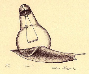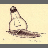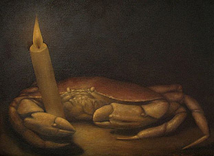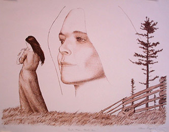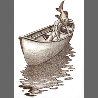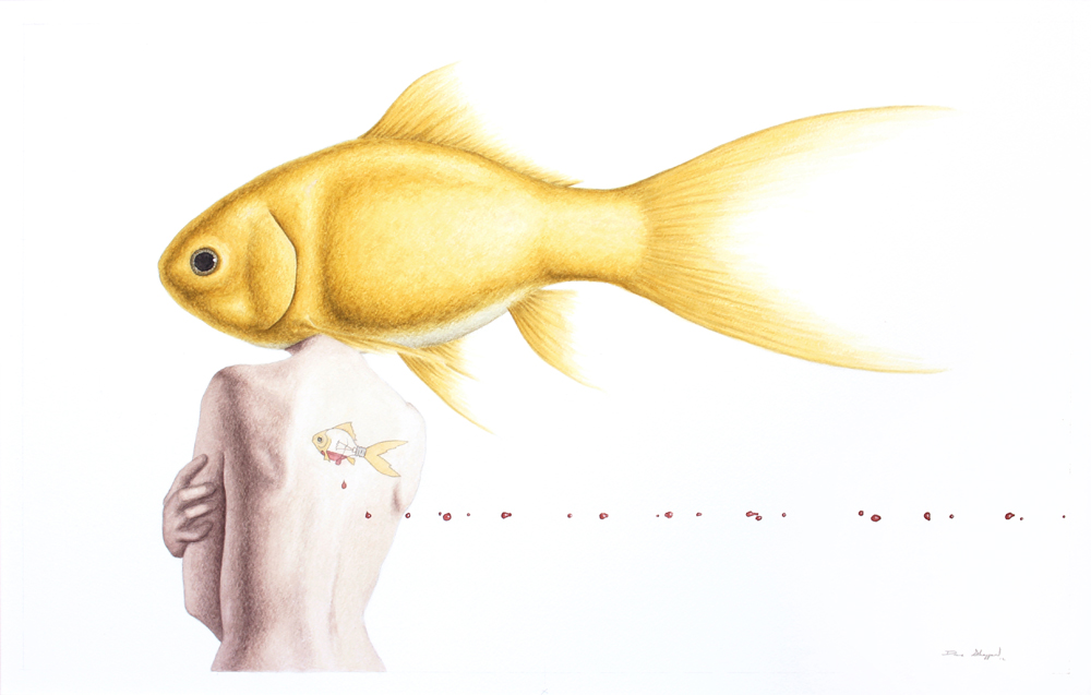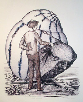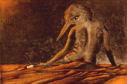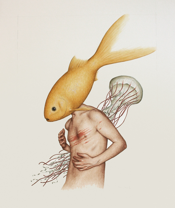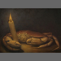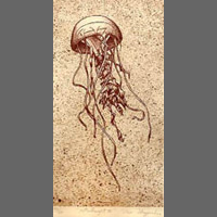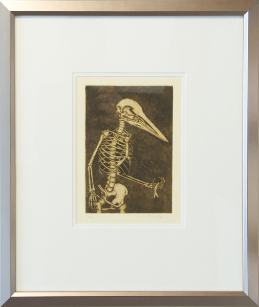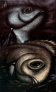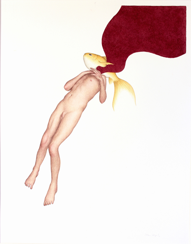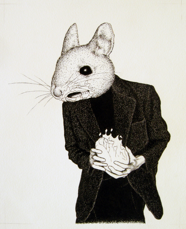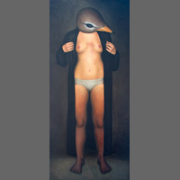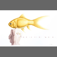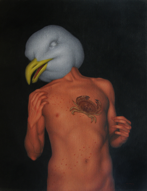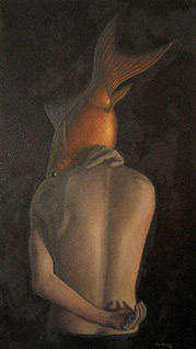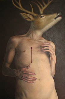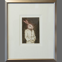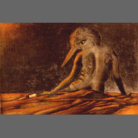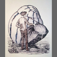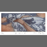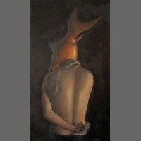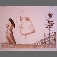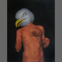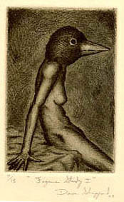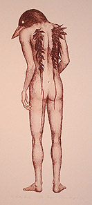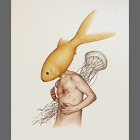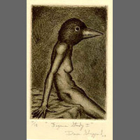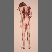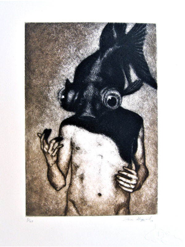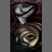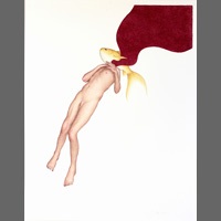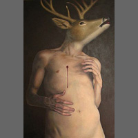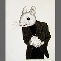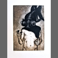 Dave Sheppard, primarily a printmaker, has recently renewed his interest in drawing and painting. Whichever medium he chooses, his images are fantastical, and his figures may merge humans and animals in unsettling ways. Sheppard typically explores the dark side of the human condition: as he himself says, his work relies on metaphors, narratives, and symbolism.
