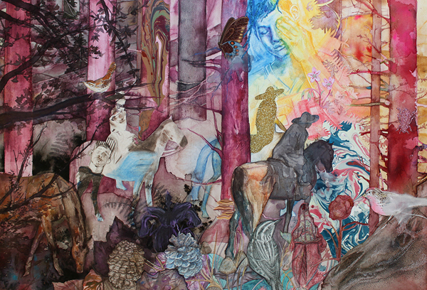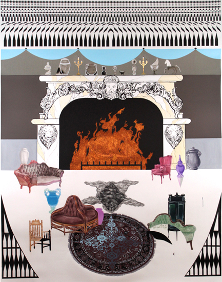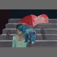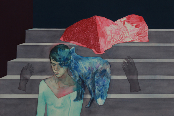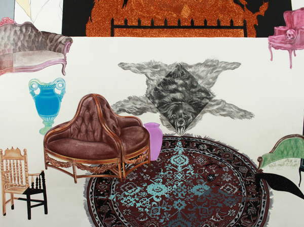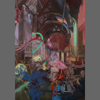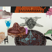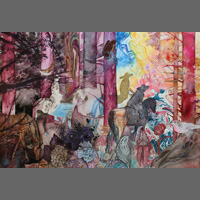 Michael Young lives and works in St John's, Newfoundland and Labrador and Berlin, Germany. His early life was divided between small communities in central Newfoundland, and the French islands of St. Pierre and Miquelon. Working primarily in painting, drawing and collage, he seeks to explore basic social life by showing how some human experiences can be primal, modern, authentic and artificial at the same time. His work is characterized by explorations of gender, style, class and social location, frequently in the context of figurative and landscape imagery. Using a variety of materials, glitter, glazes, foils, and vibrant colours he constructs figures that communicate postmodern malaise and ennui, disconnection and exclusion from community, and the evolution of social bonding and masculinity.